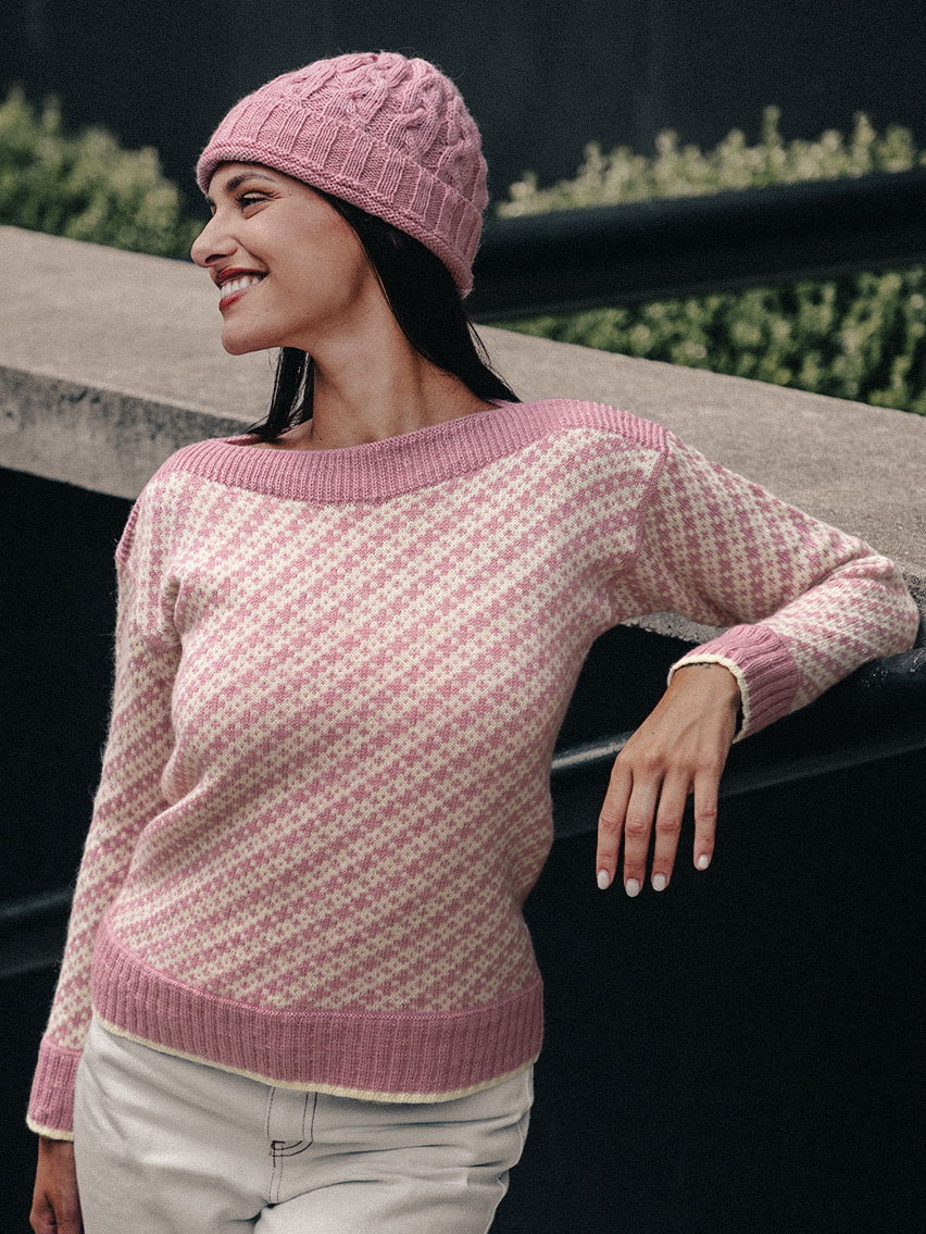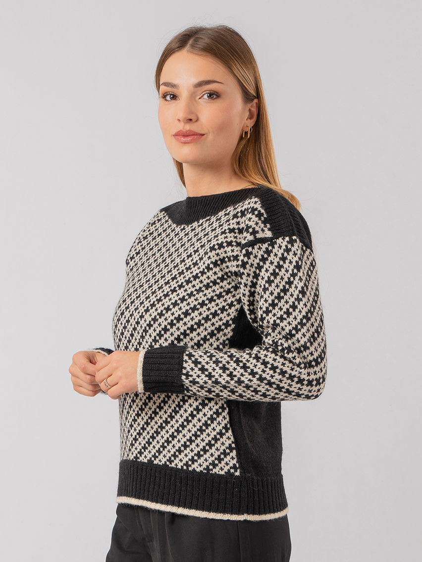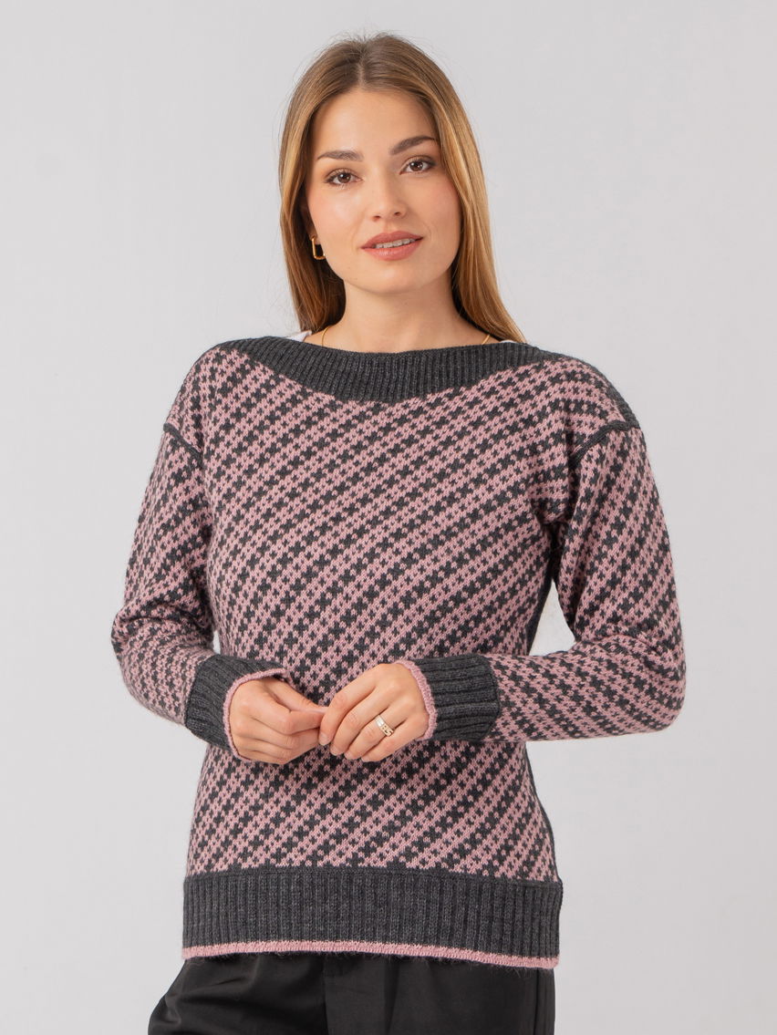 Sweater con jacquard y escote bote. Estándar, holgado medio.. Alta capacidad calórica, segunda y tercera piel. Ideal para otoño/invierno.