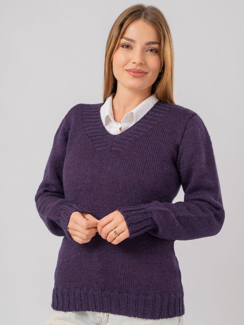 Sweater con escote “V”. Holgado, estándar. Alta capacidad calórica, segunda y tercera piel. Ideal para otoño/invierno.