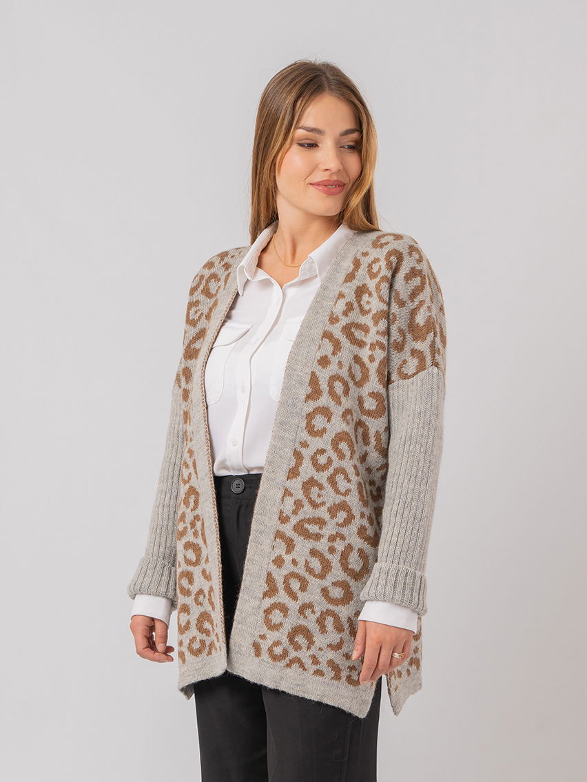 Saco largo animal print con manga caída. Estándar, holgado medio. Alta capacidad calórica, segunda y tercera piel. Ideal para otoño/invierno