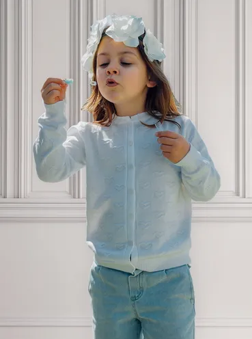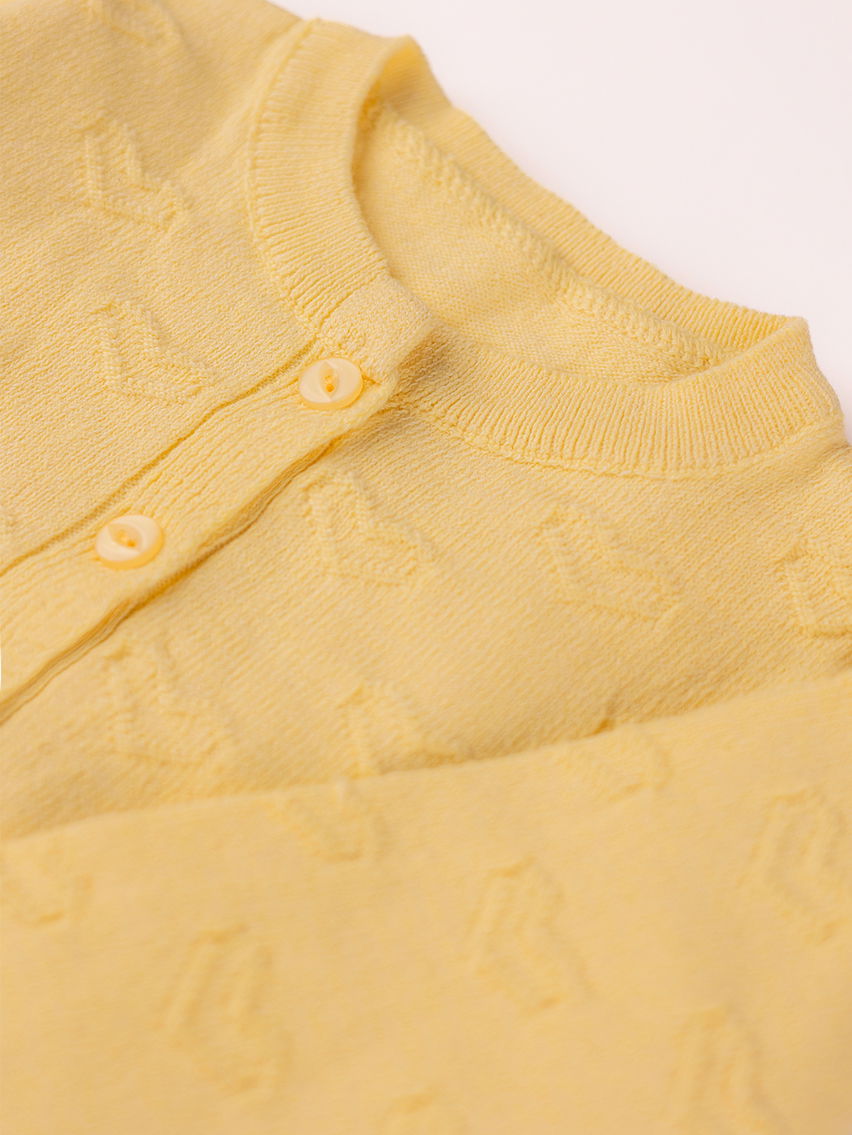 Cárdigan con trabajo de punto en delantera y mangas. Calce estándar. Textura suave, con caída y fresco. Ideal para primavera/verano.  Apta para usar sobre la piel.