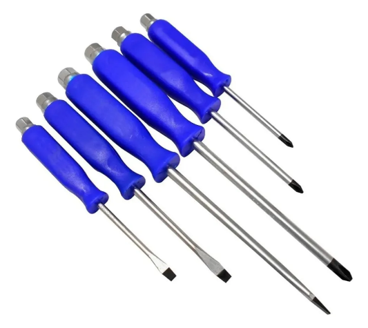 Juego de 6 destornilladores de golpe3 philips3 planosForjados en acero y cromo vanadioVástago hexagonal para hacer fuerza con llaveMango antideslizantePunta imantadaAcero inoxidableApto uso industrial/profesional