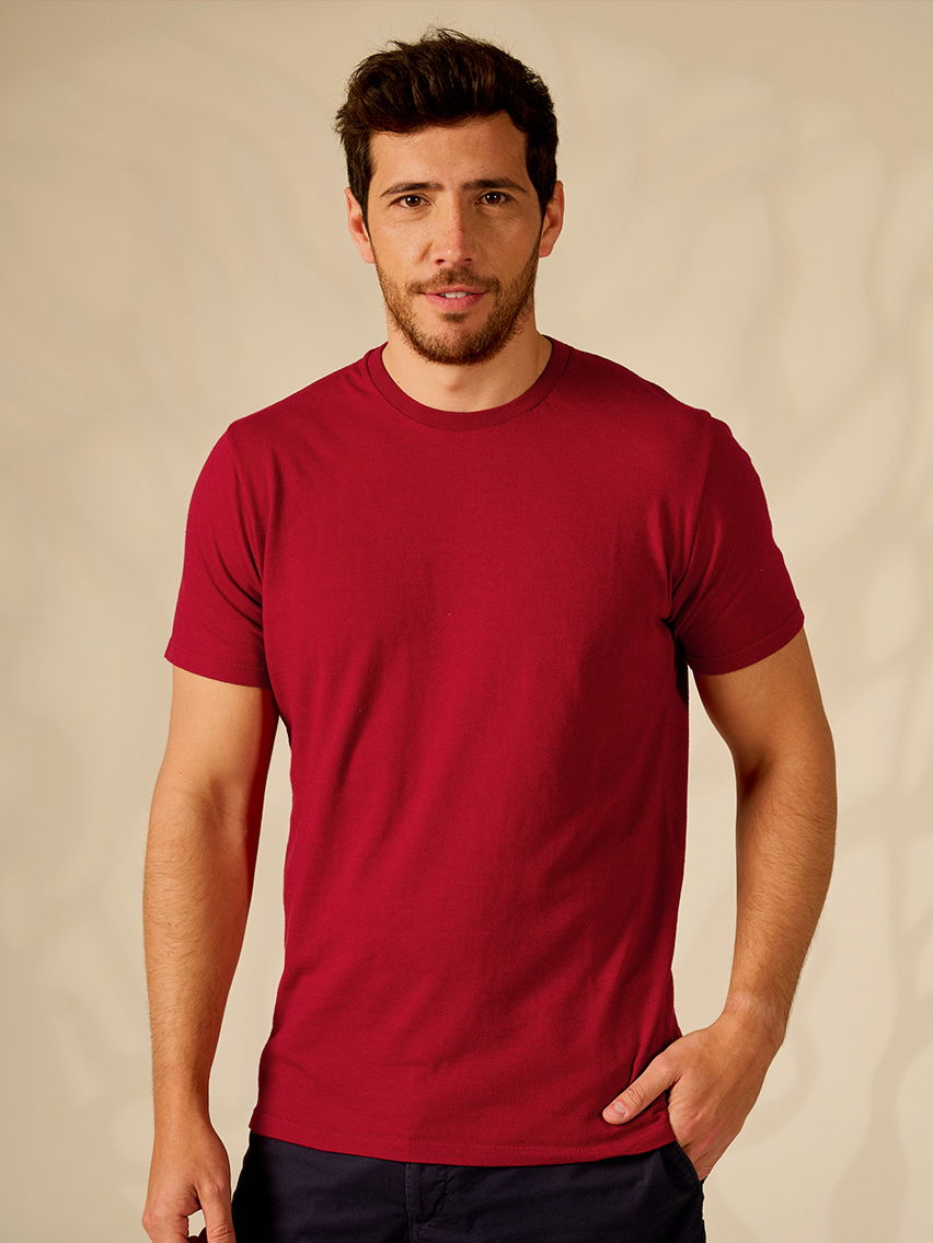 Remera básica cuello redondo. Estándar, holgado medio. Textura de algodón, suave. Apta para usar sobre la piel.